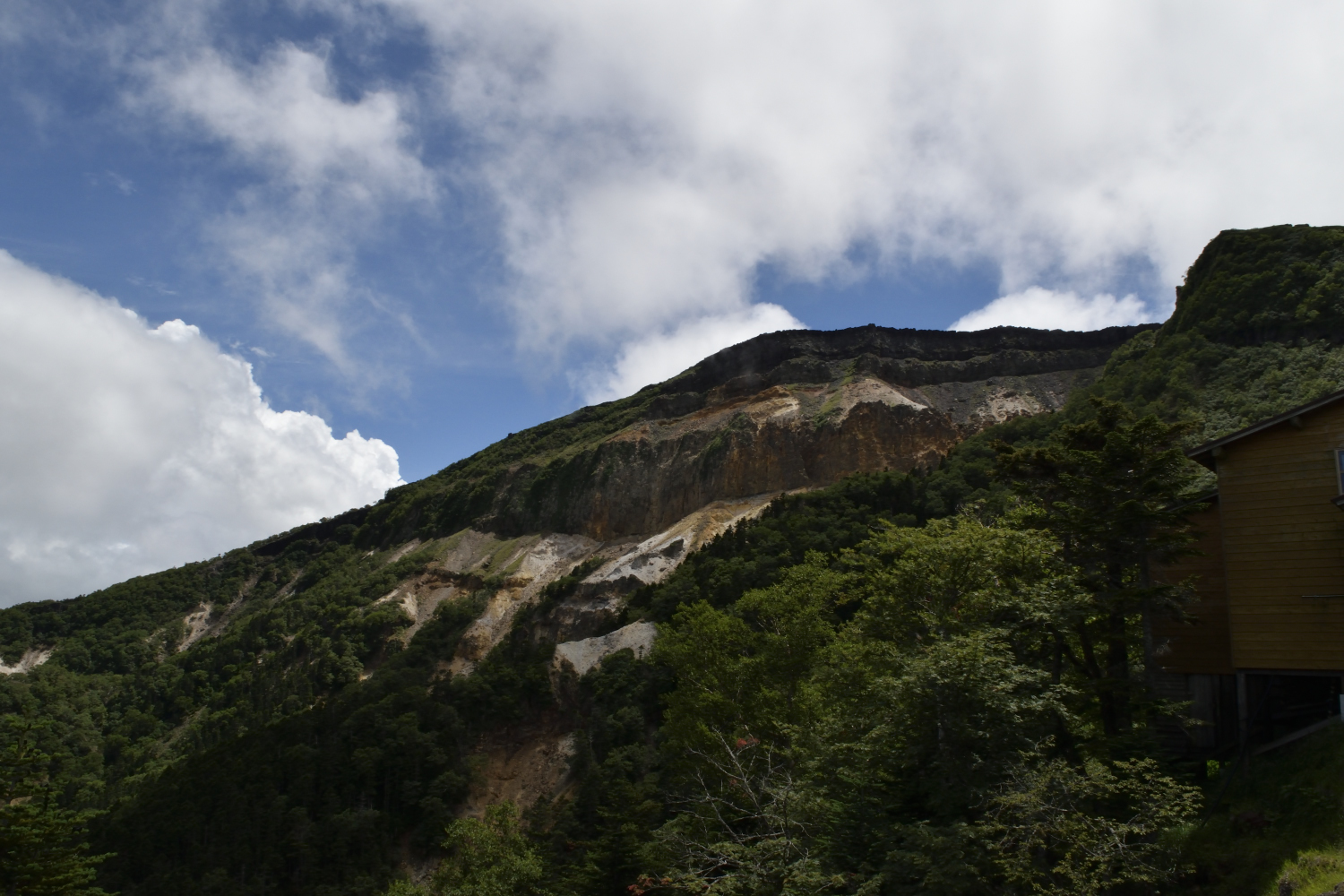 登っている最中に、硫黄岳が見えました。硫黄岳北側はこんな感じ。