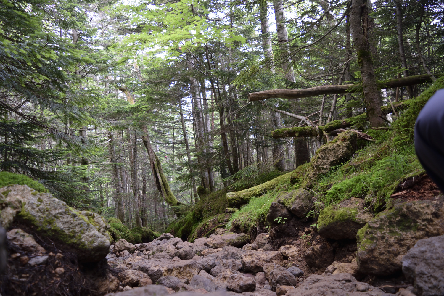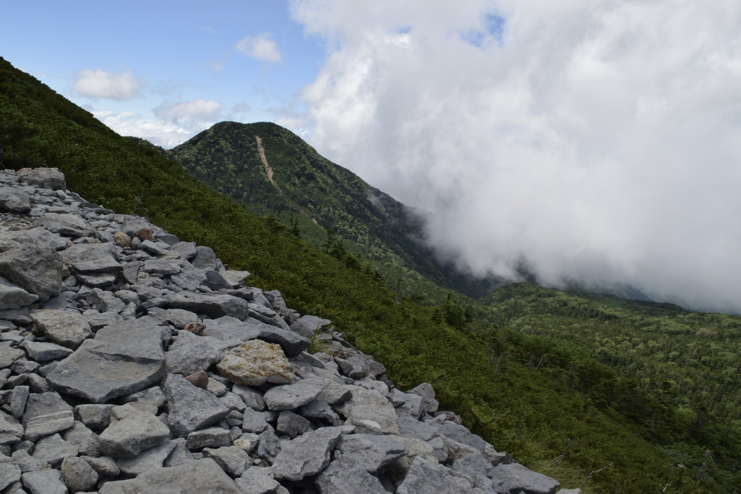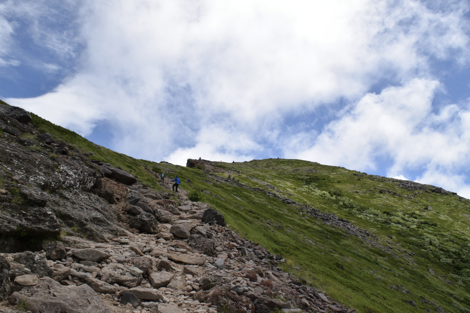 途中からは森林限界で木が無くなり、石や岩場になっていきます。