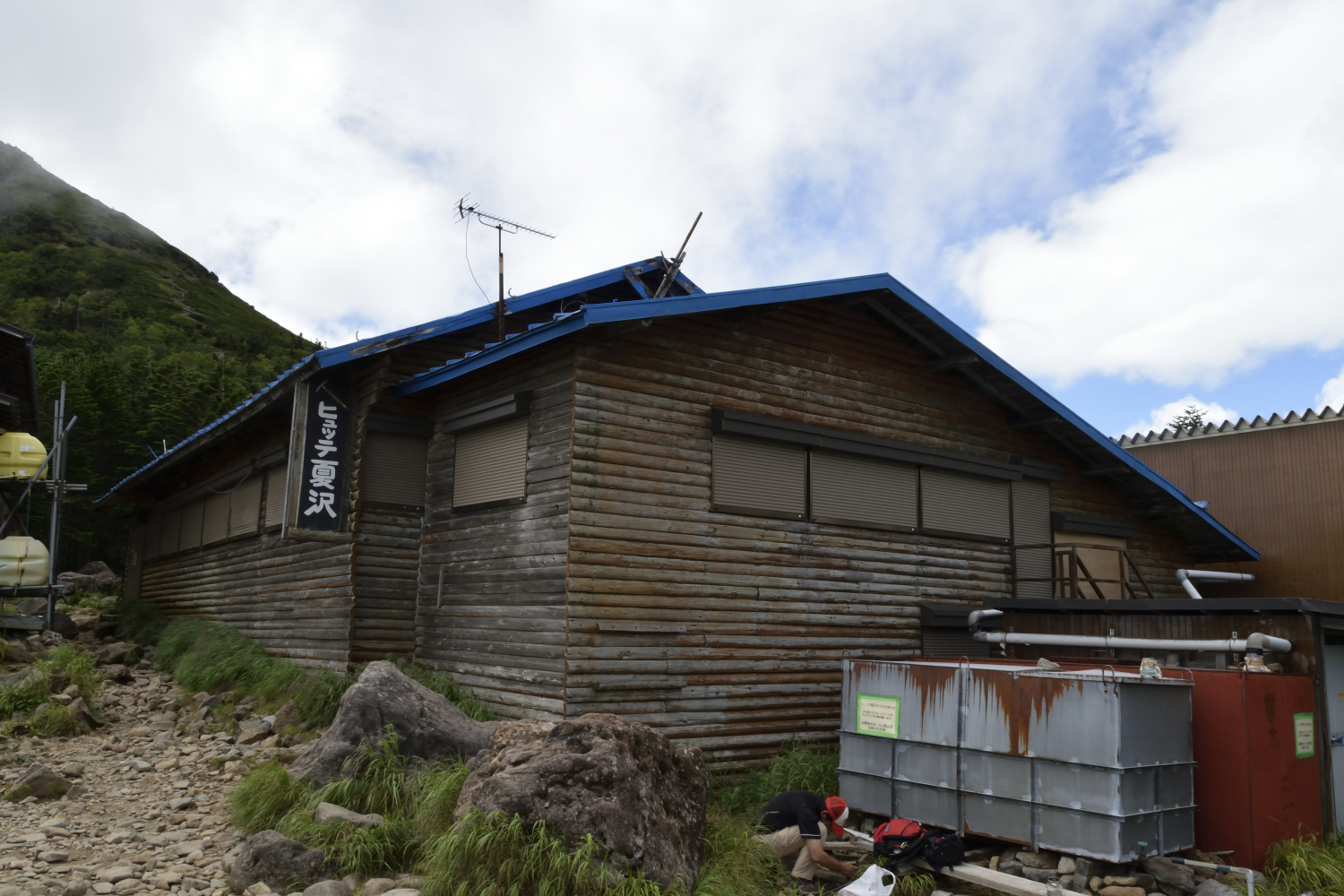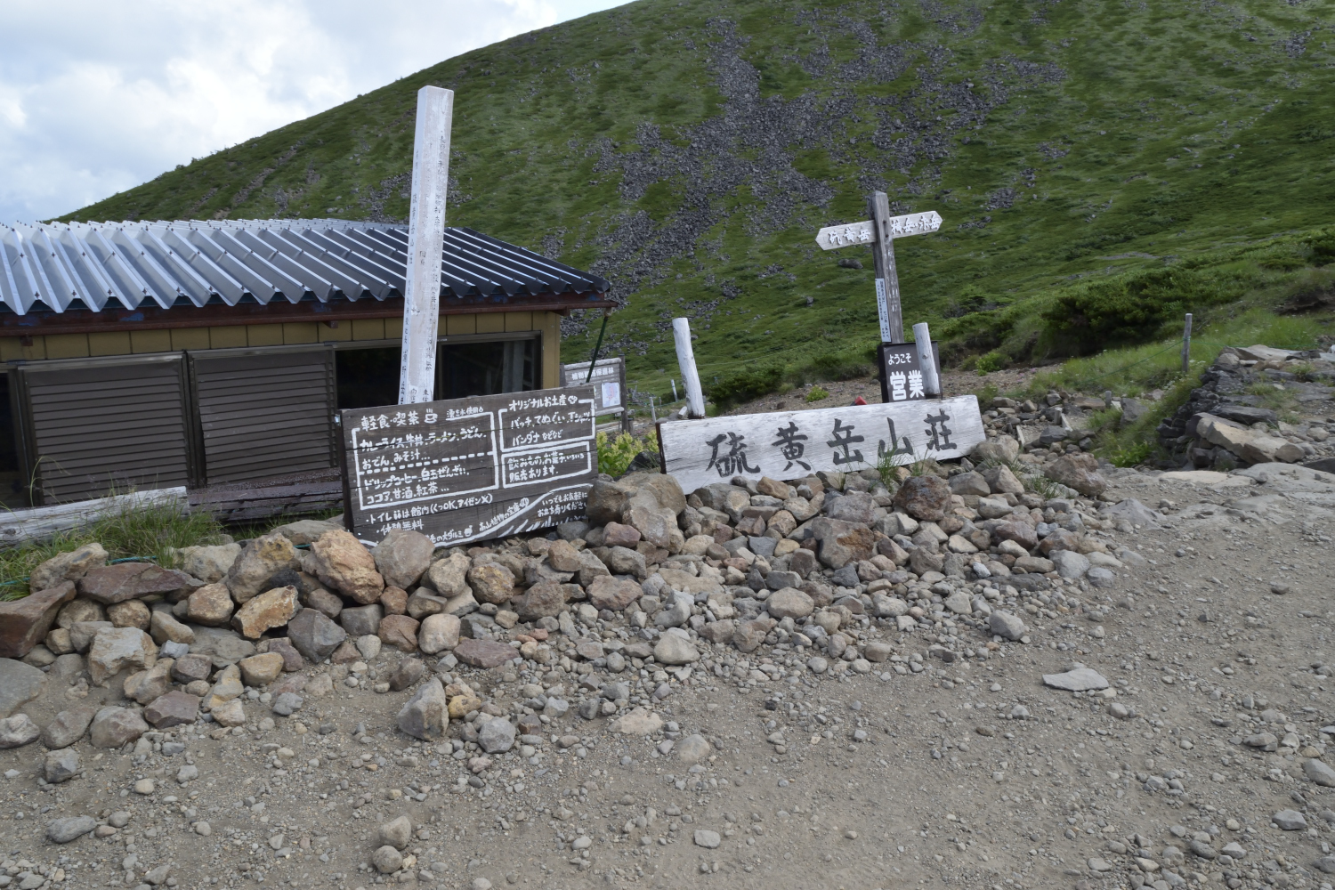 で、下って到着、硫黄岳山荘。14時頃。