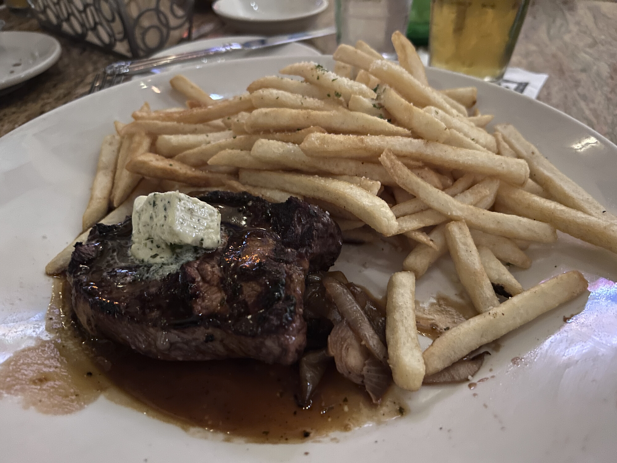 夕飯は定番になりつつあるチーズケーキファクトリー。またも肉。