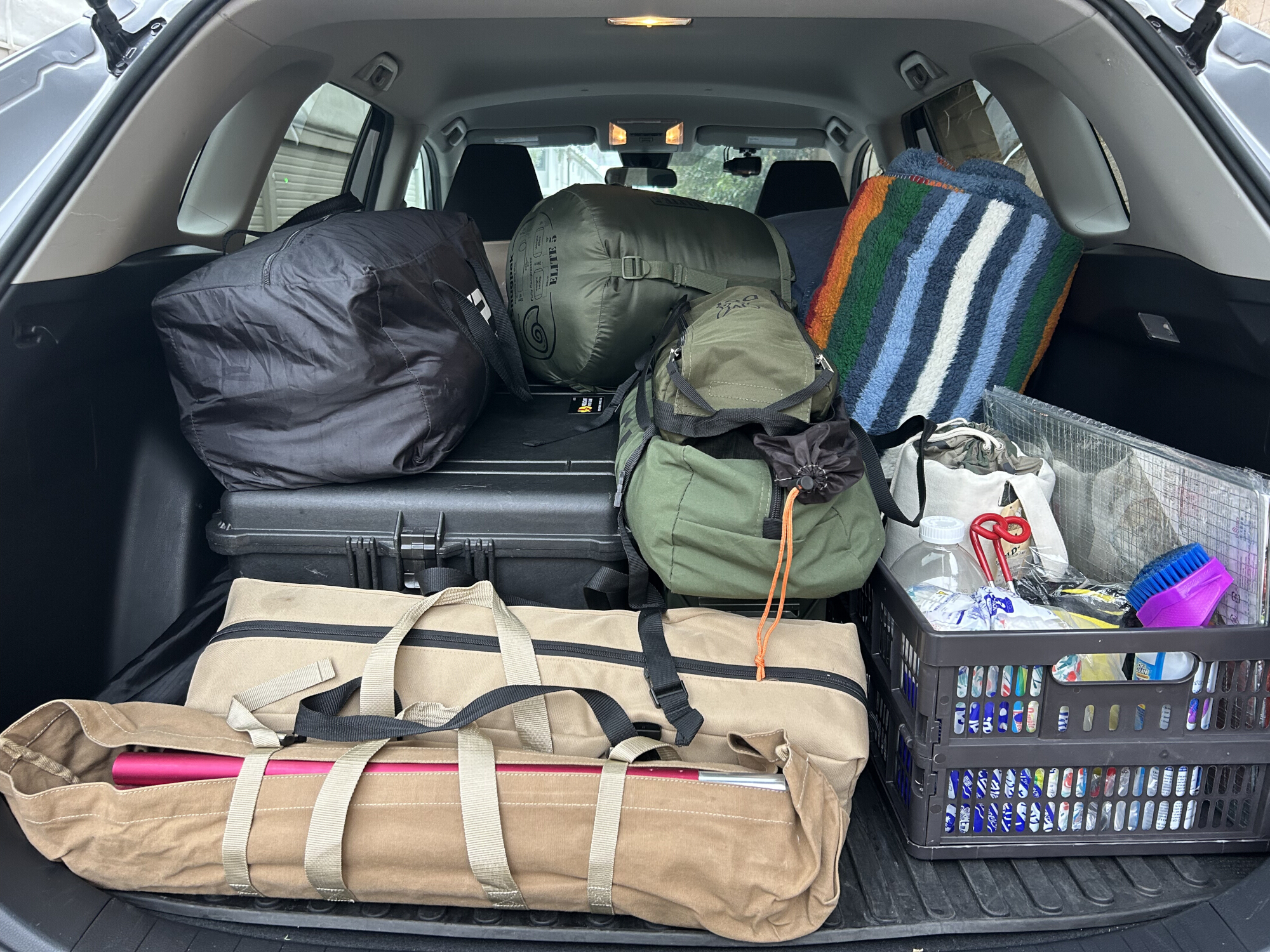 8時頃起床して、荷物の積み込み。タープと常時広げているコット以外はすべて。