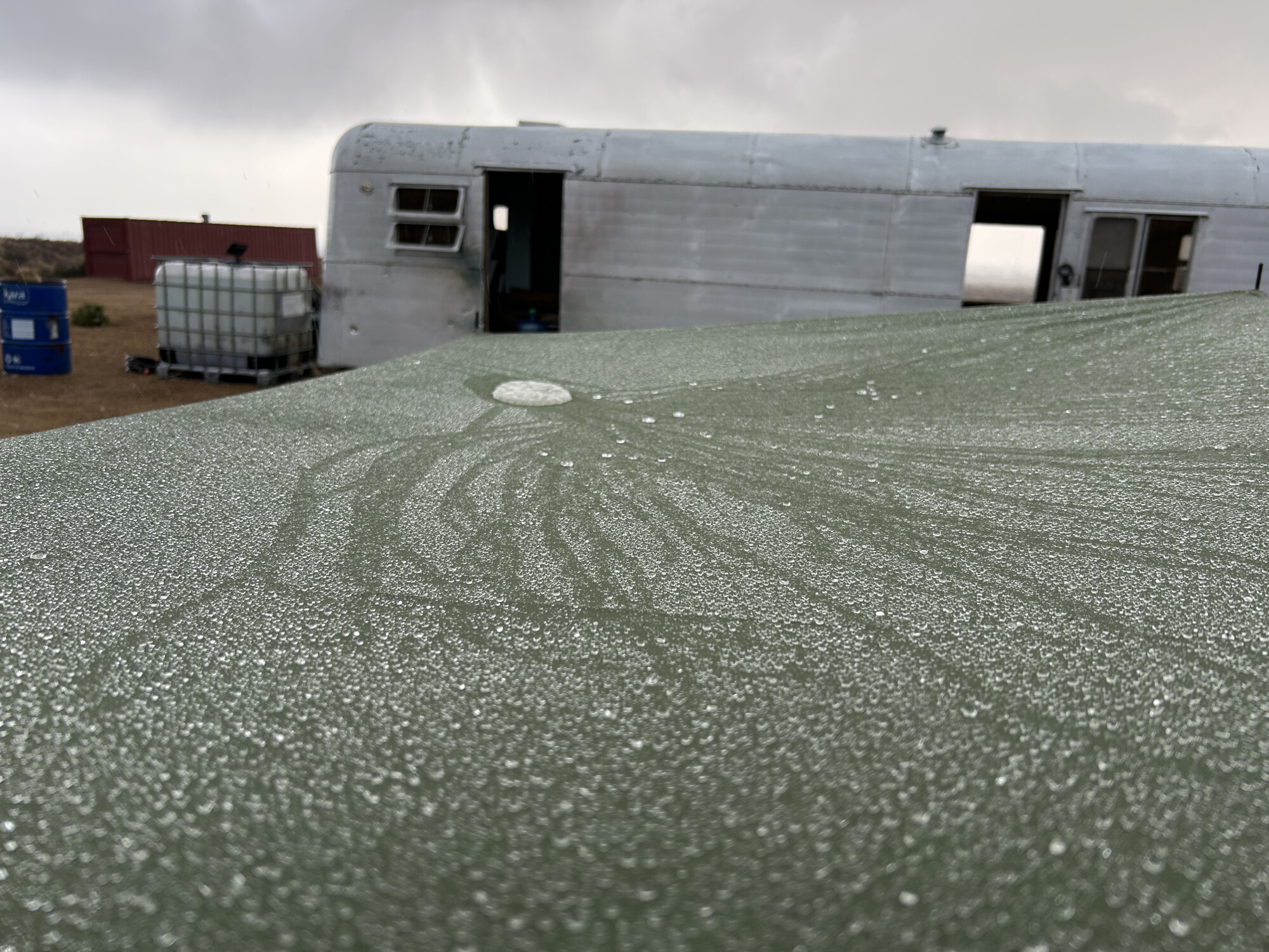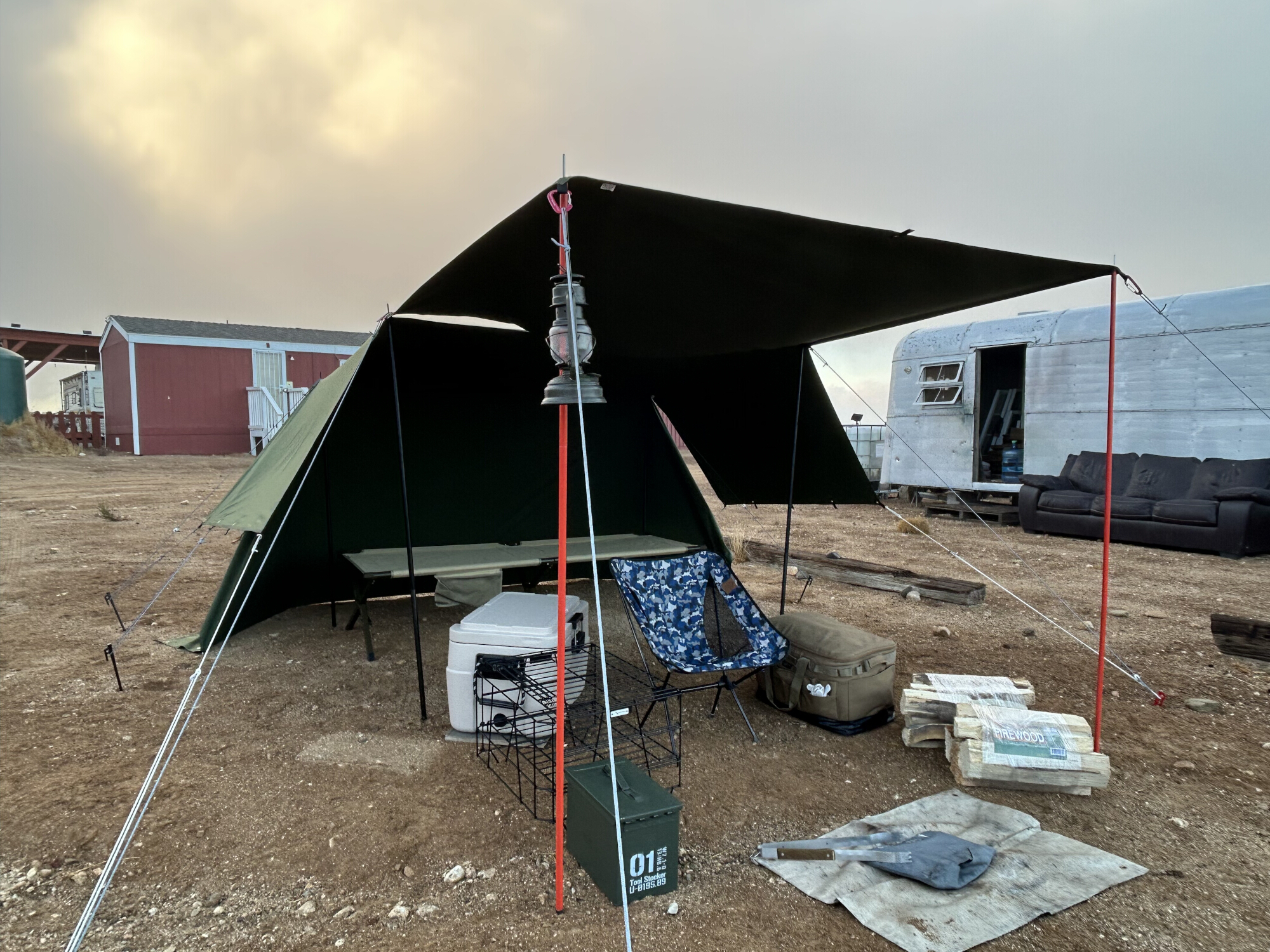のんびり張っていたら、急に雨。砂漠気候なのか…(上の写真見ても快晴なのに)