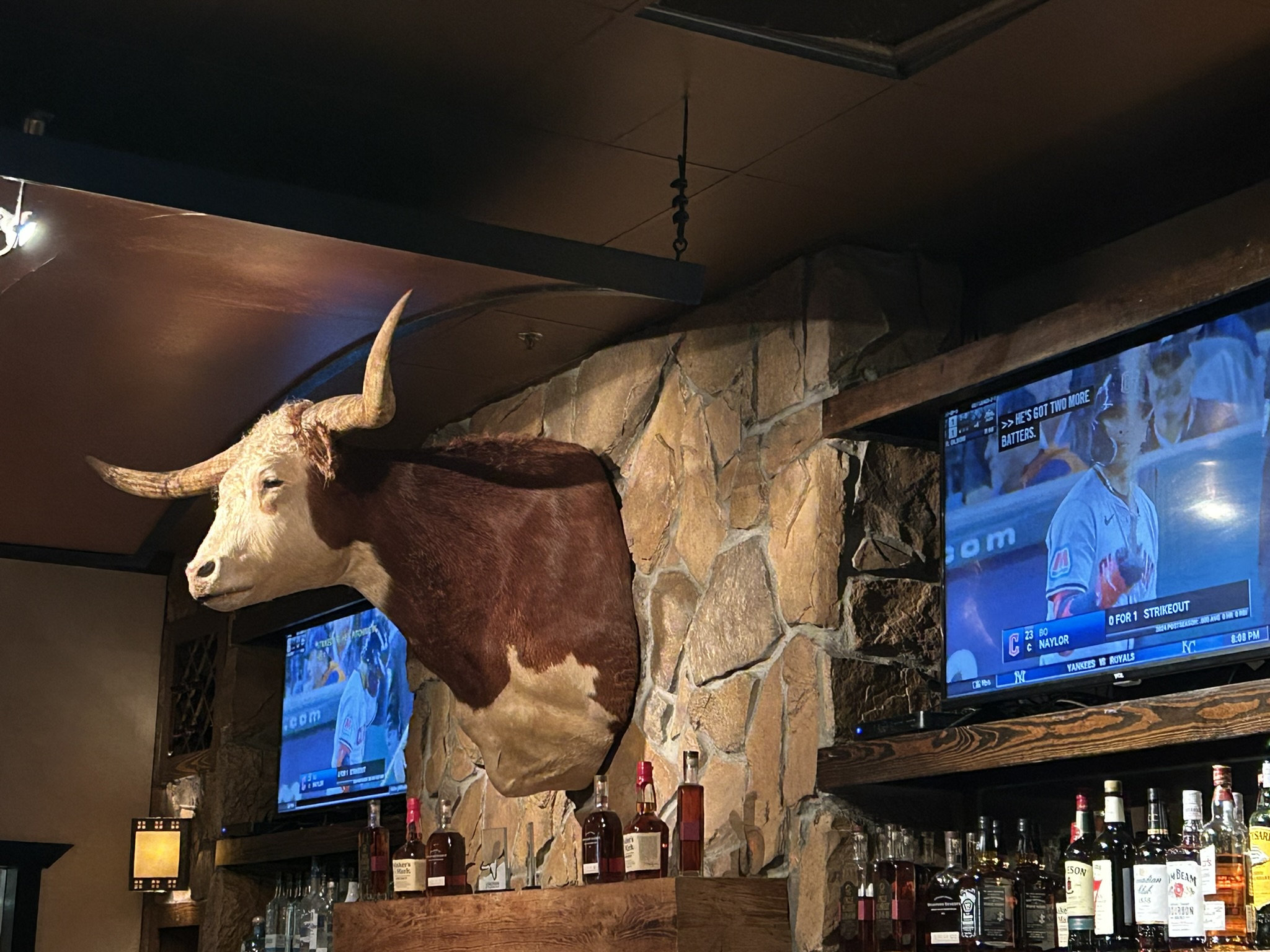 お店に飾ってあった牛の剥製? お店の名前はLong Horn Steak House。