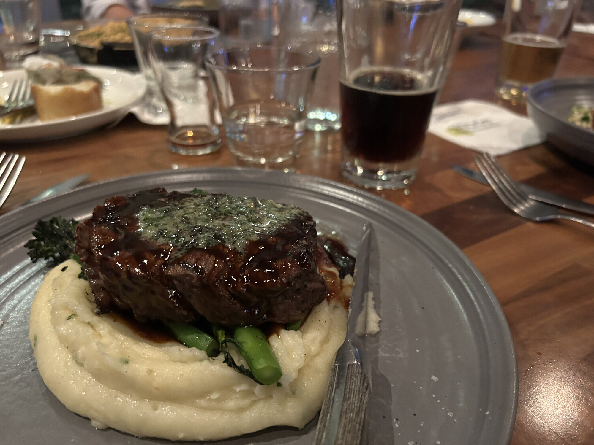 かなり満腹になって満足。アスパラガスも柔らかくて美味。サイドのマッシュルームも。
