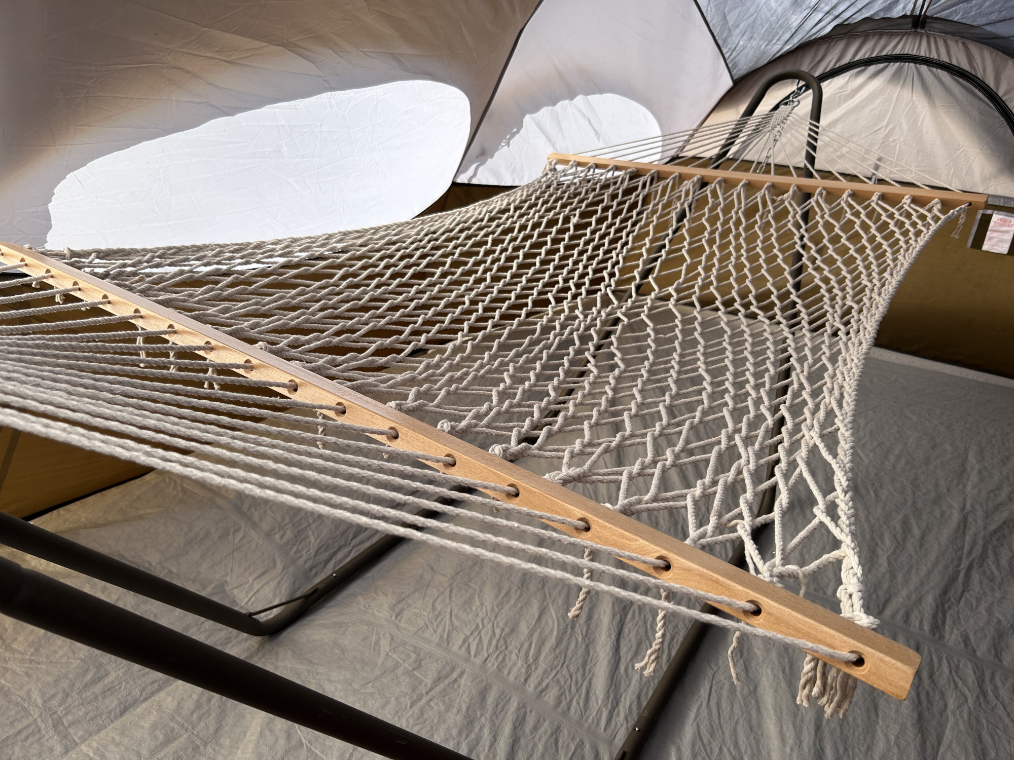 キャンプでハンモック。8人用なので、スペースも十分。