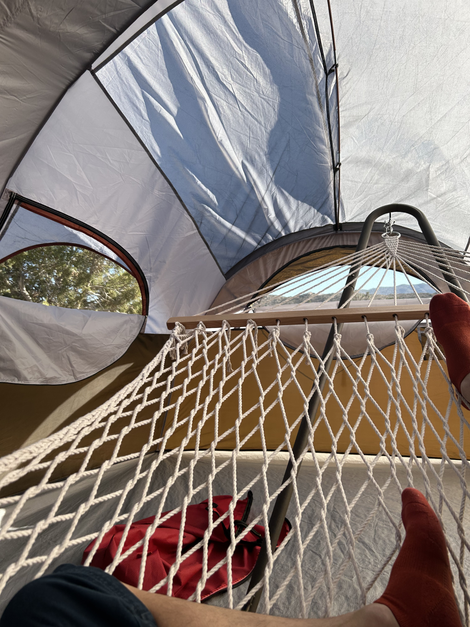 テント入口側を見るようにして撮った1枚。開放感がすごい。