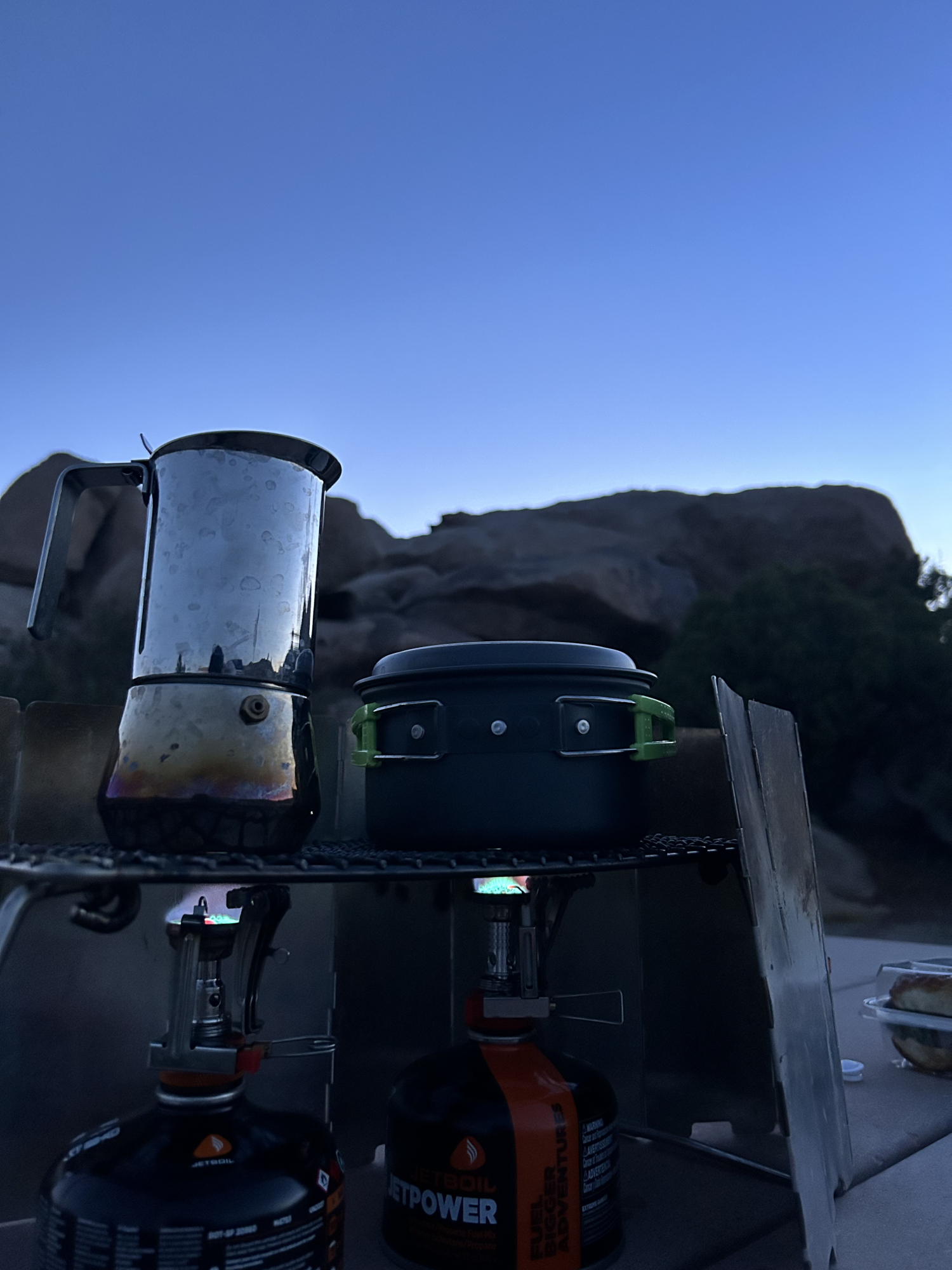 バーナーダブルの用意は楽でいい。左はマキネッタ。右はミルク。