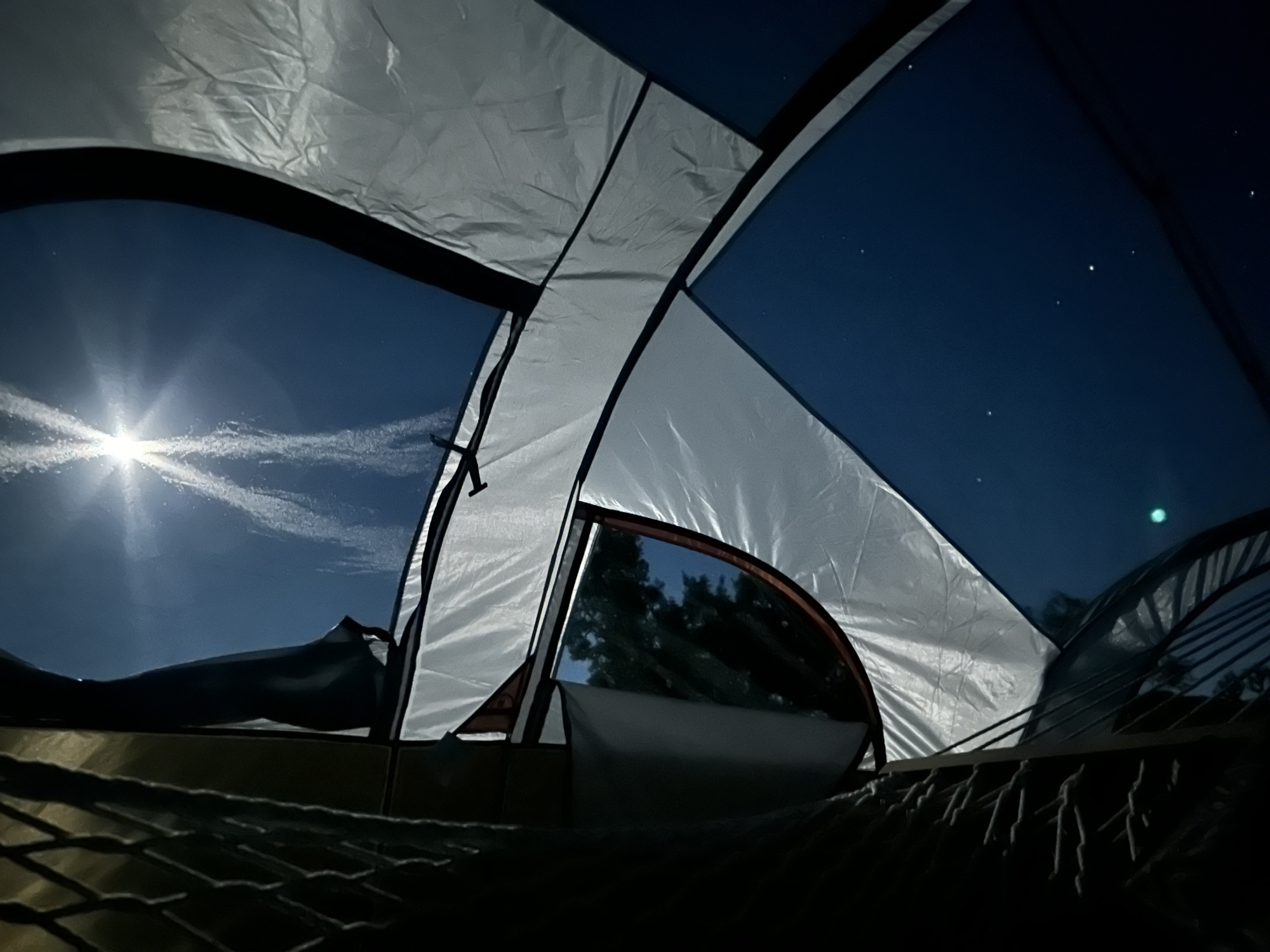 月明かりがメッシュに反射してXの形になっていますが、かなり明るいです。