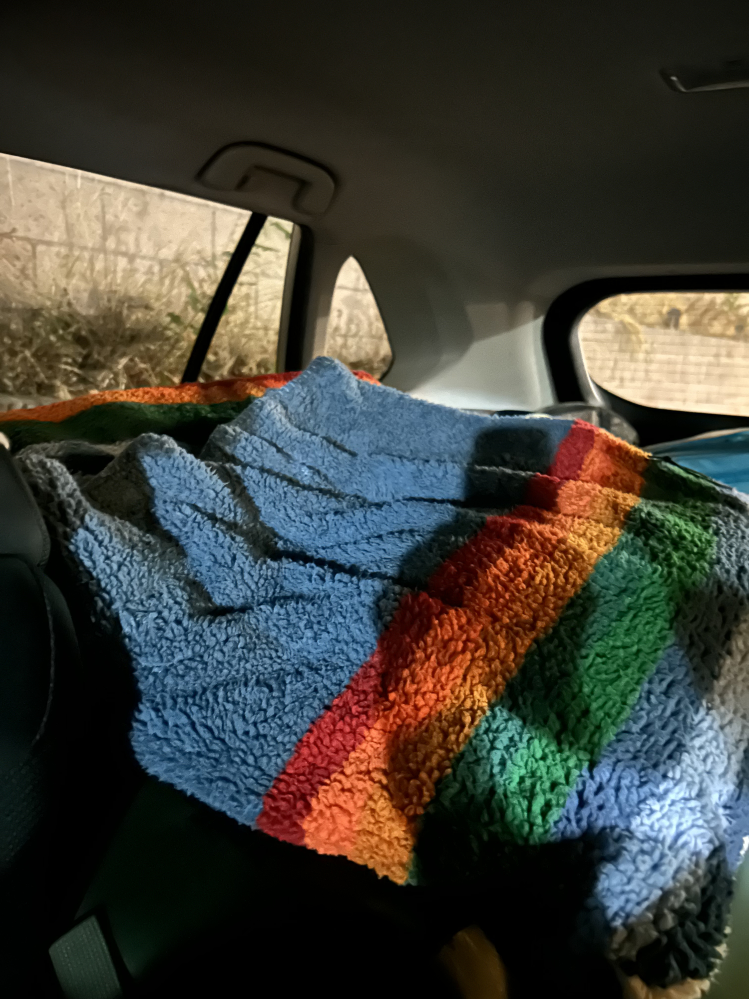 家に帰ってクイーンサイズのブランケット(キャンプ用に買ってあったやつ。)も