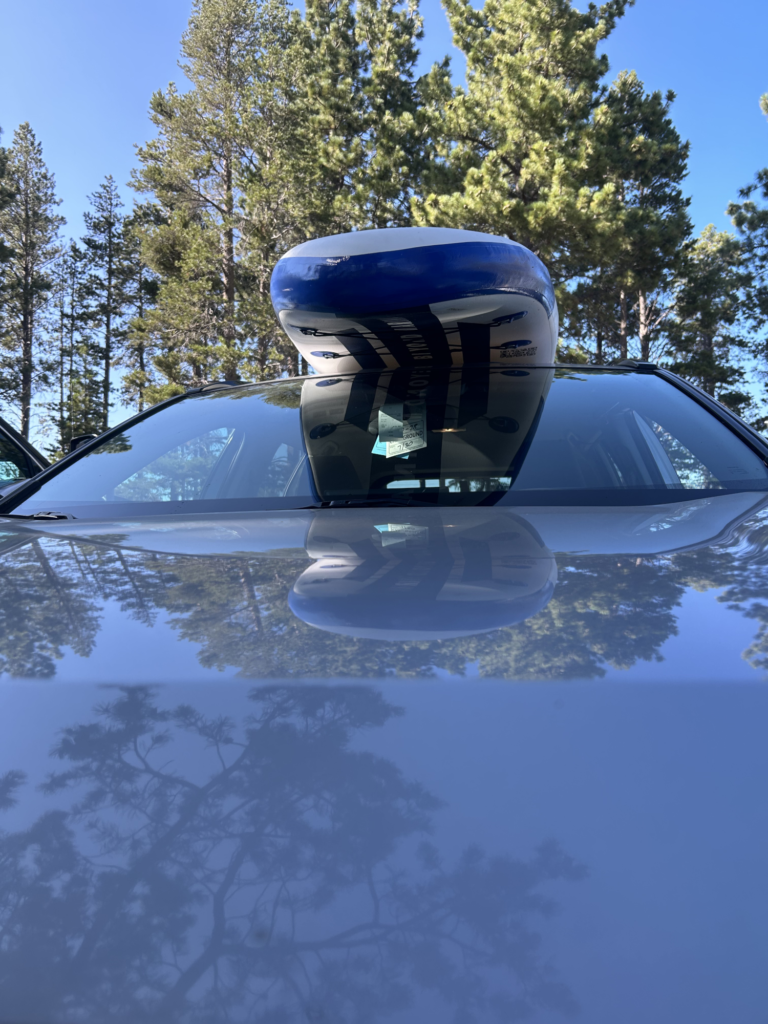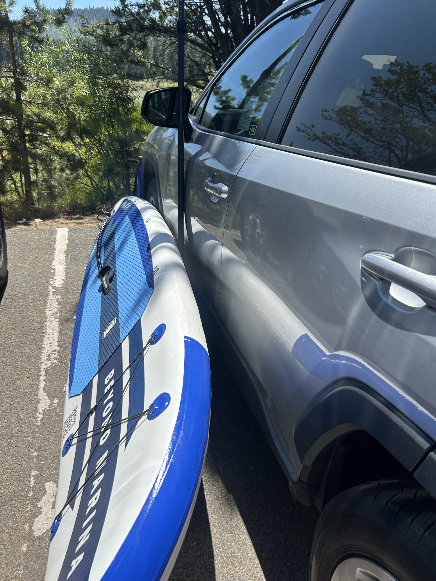 しっかりガイロープでSUPについているリングと車をつなげて固定してあります。