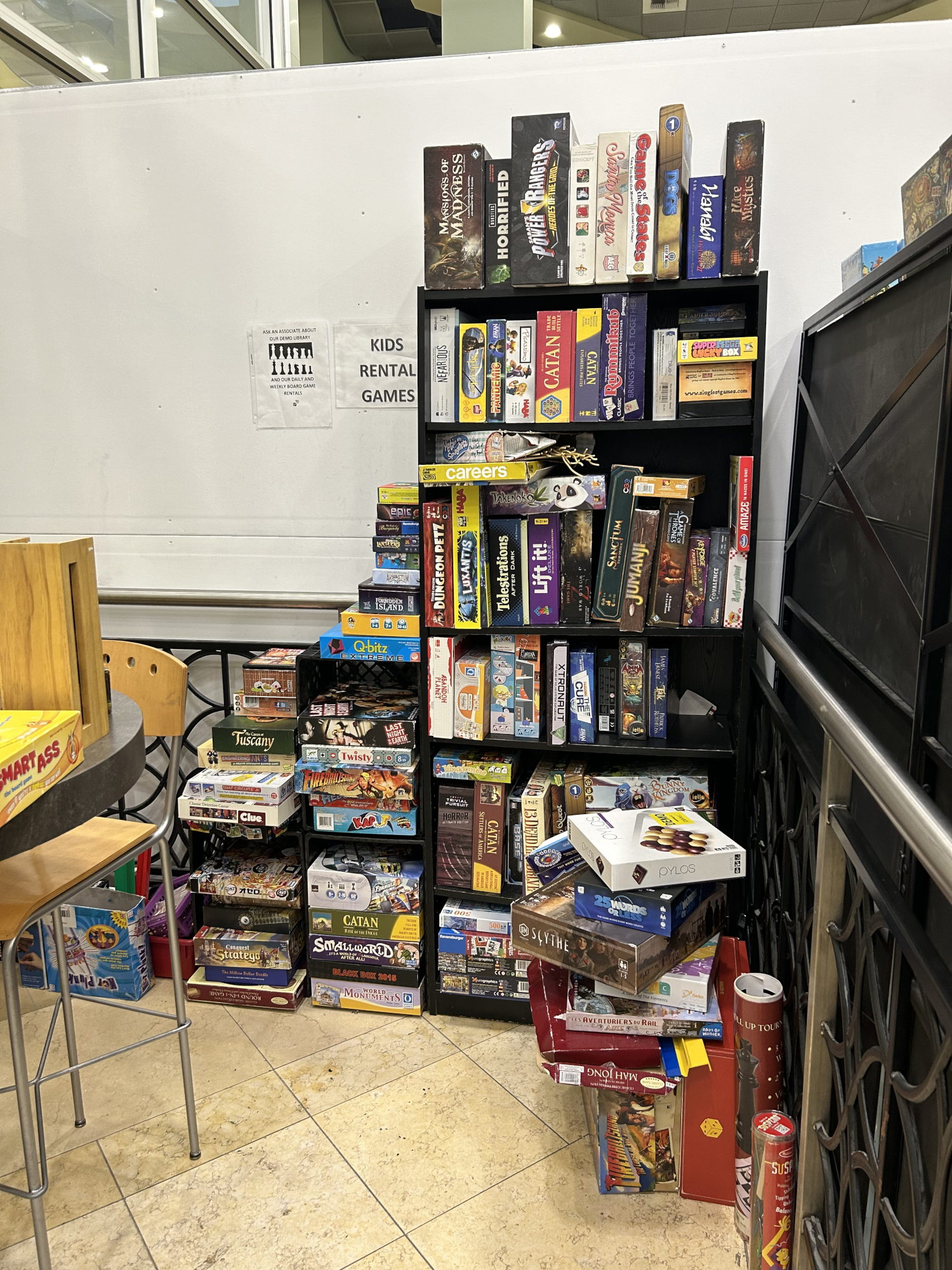 あと、おそらくこのスペースで使うためのレンタルゲームの山が。
