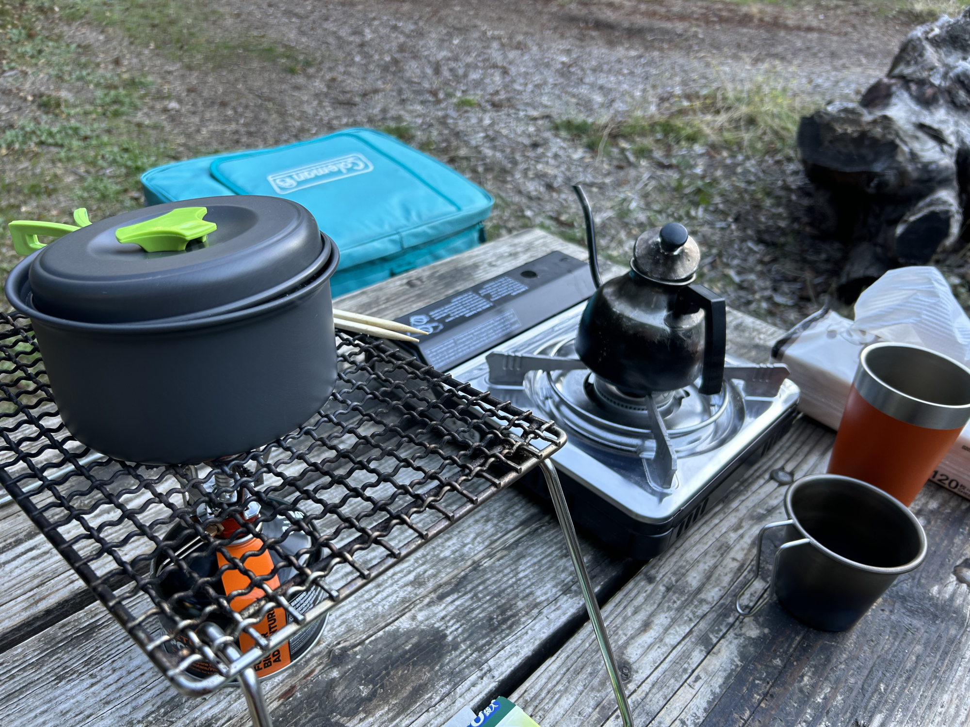 カセットコンロは前任者からの貰い物で、クッカーは少し小さいのを新調。