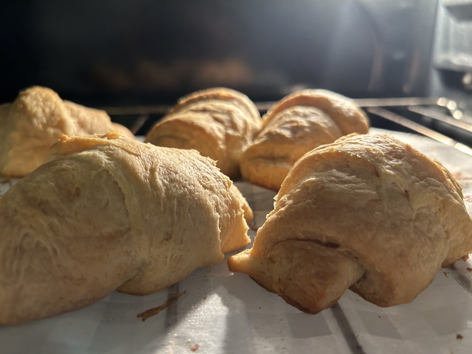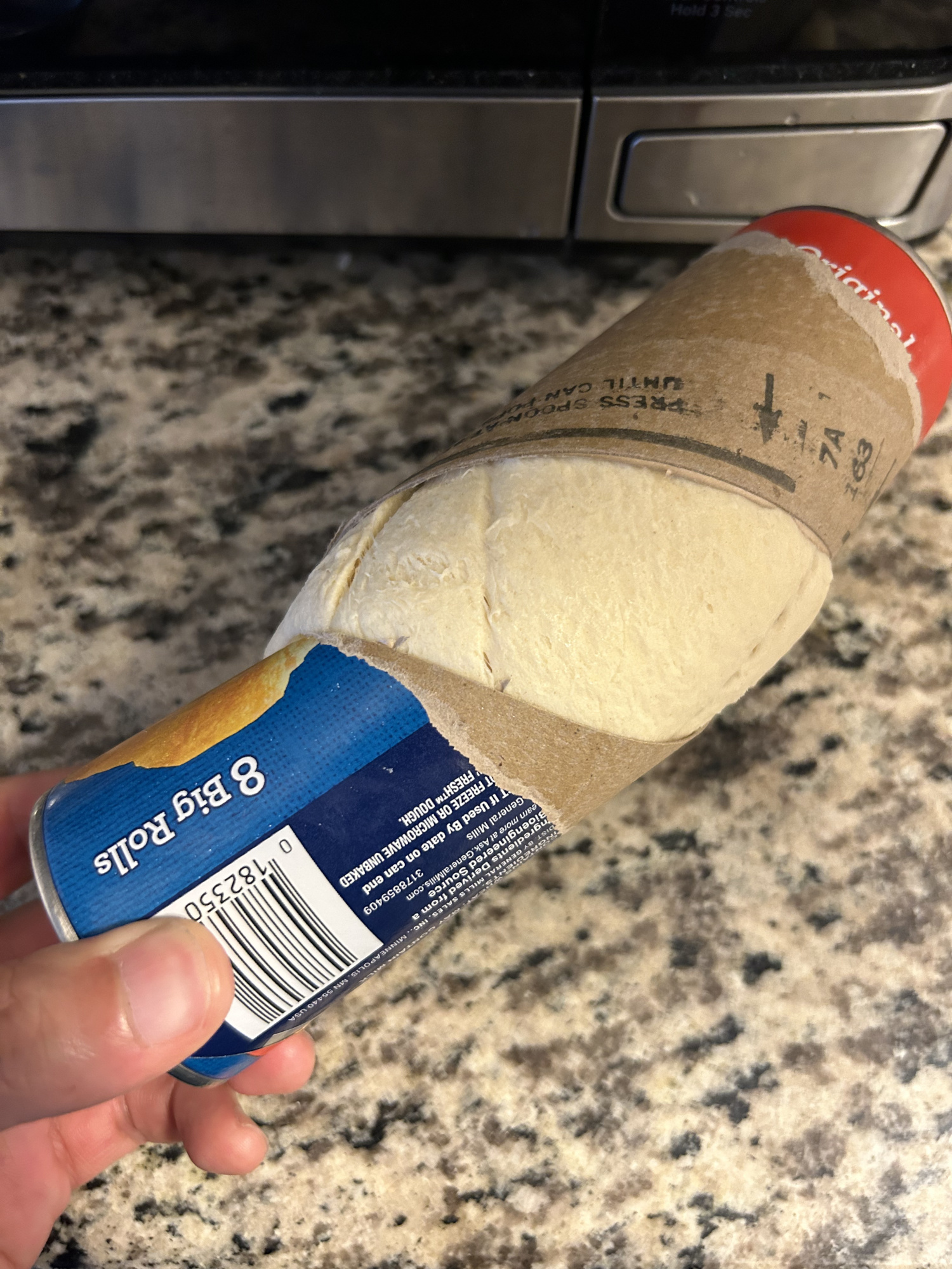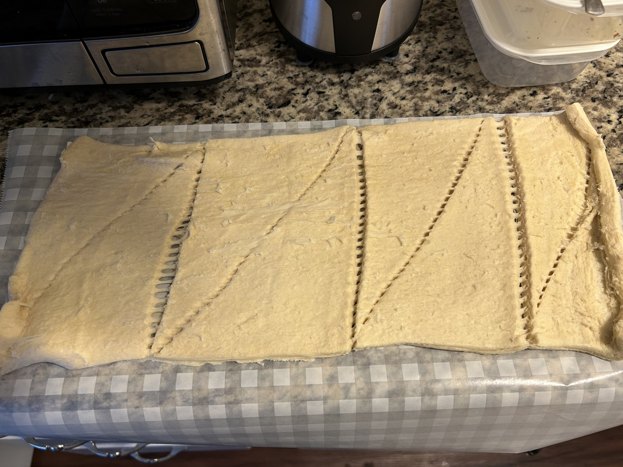 すでにミシン目があって、巻けばクロワッサン生地の完成。