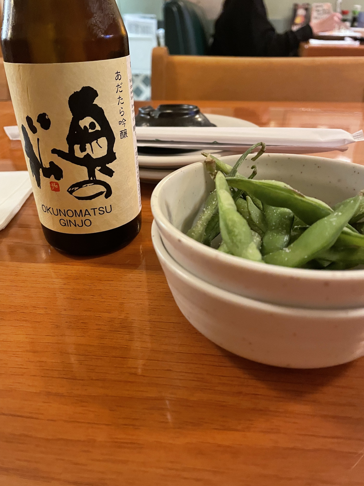 久しぶりの日本酒です。お通しがついてきて日本を感じます。