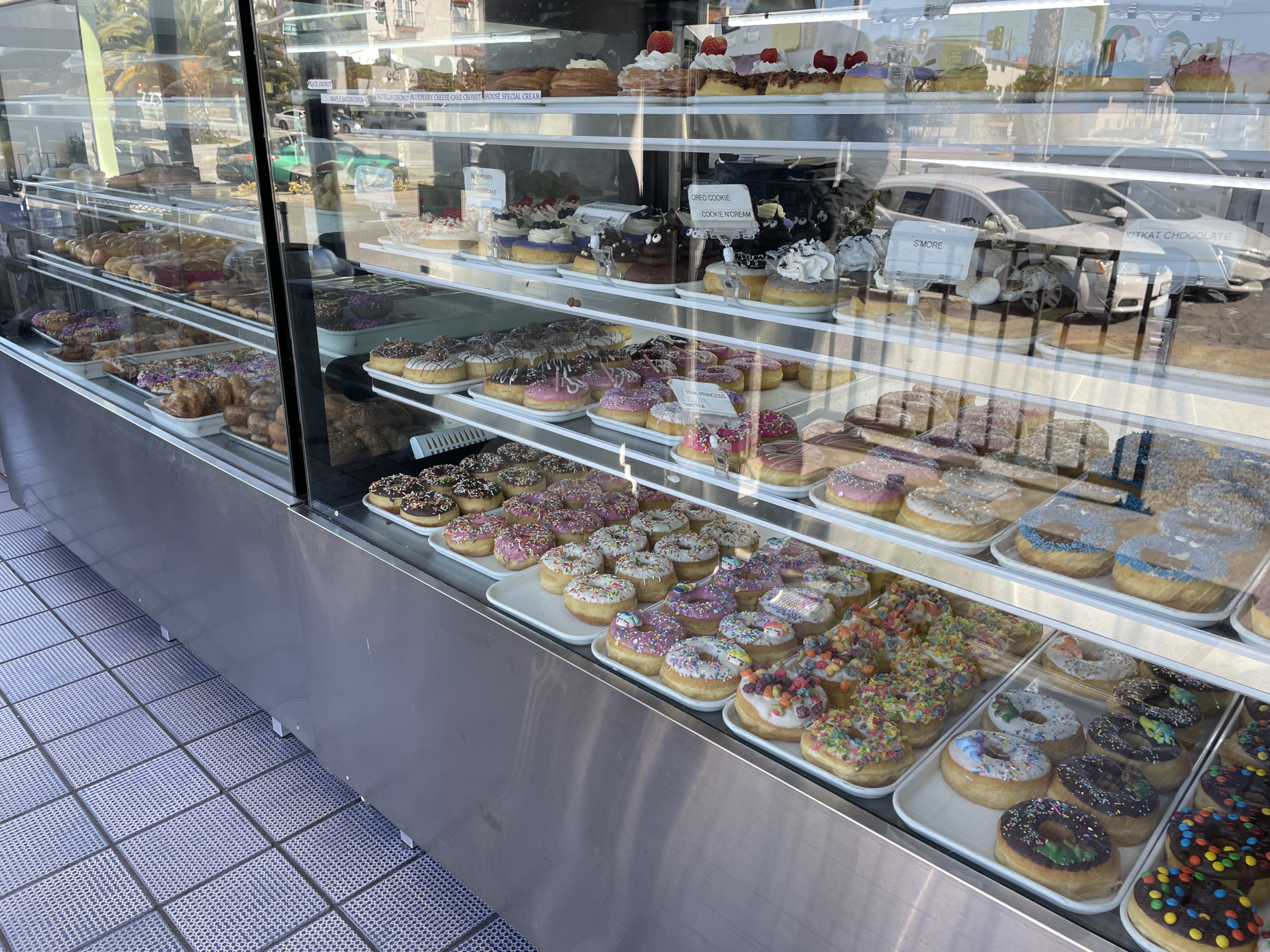カラフルなドーナツ、大きいドーナツ。いろいろです。わりと大きめです。