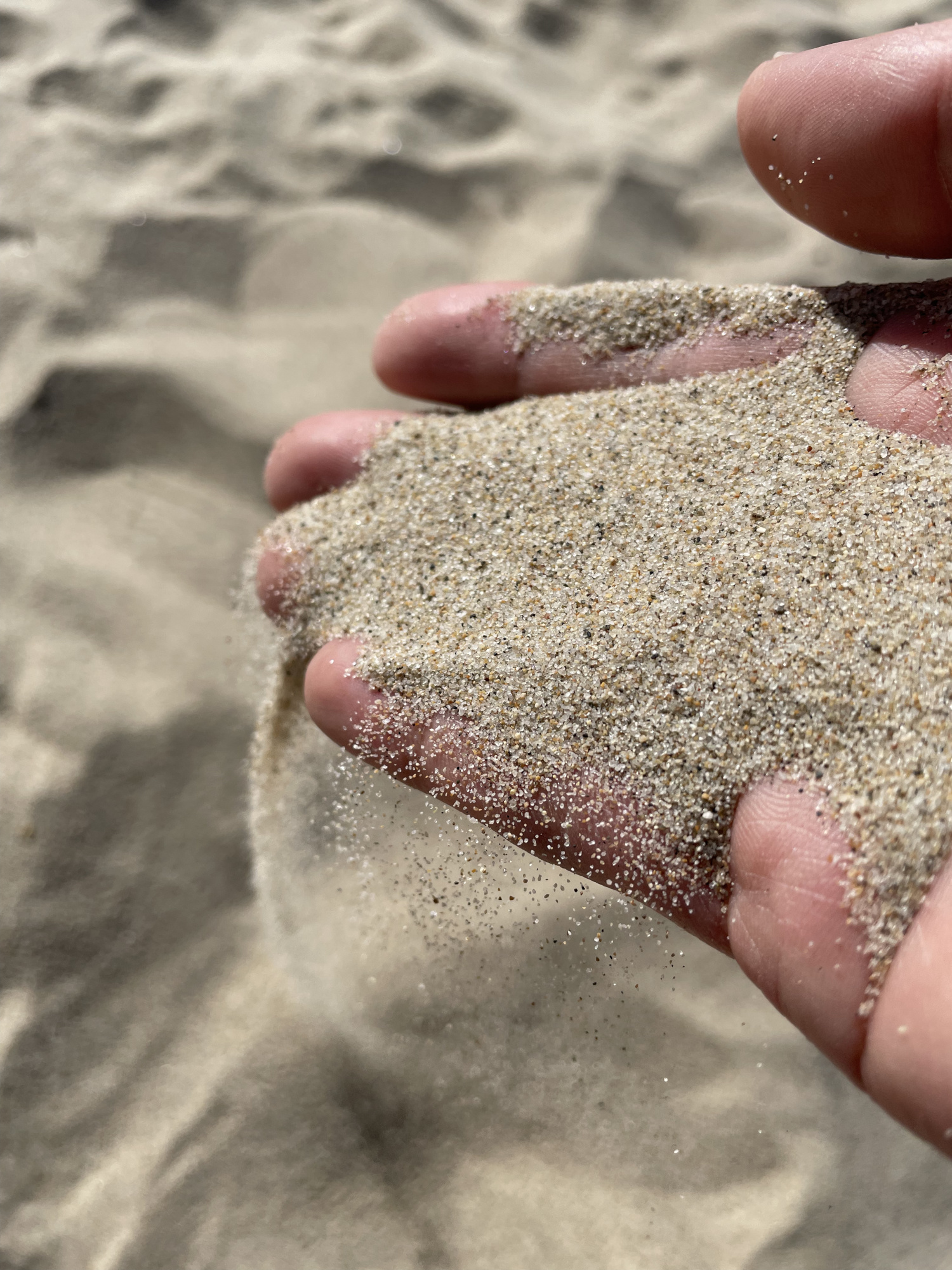 そりゃビーチバレーができるくらいだし、そうなんだろうけどきれいな砂です。