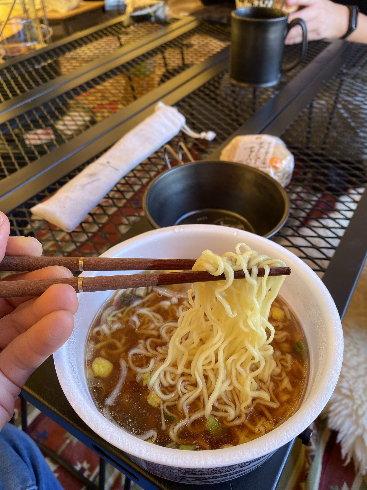 到着が11時50分だったので、カップラーメンとコーヒータイム。