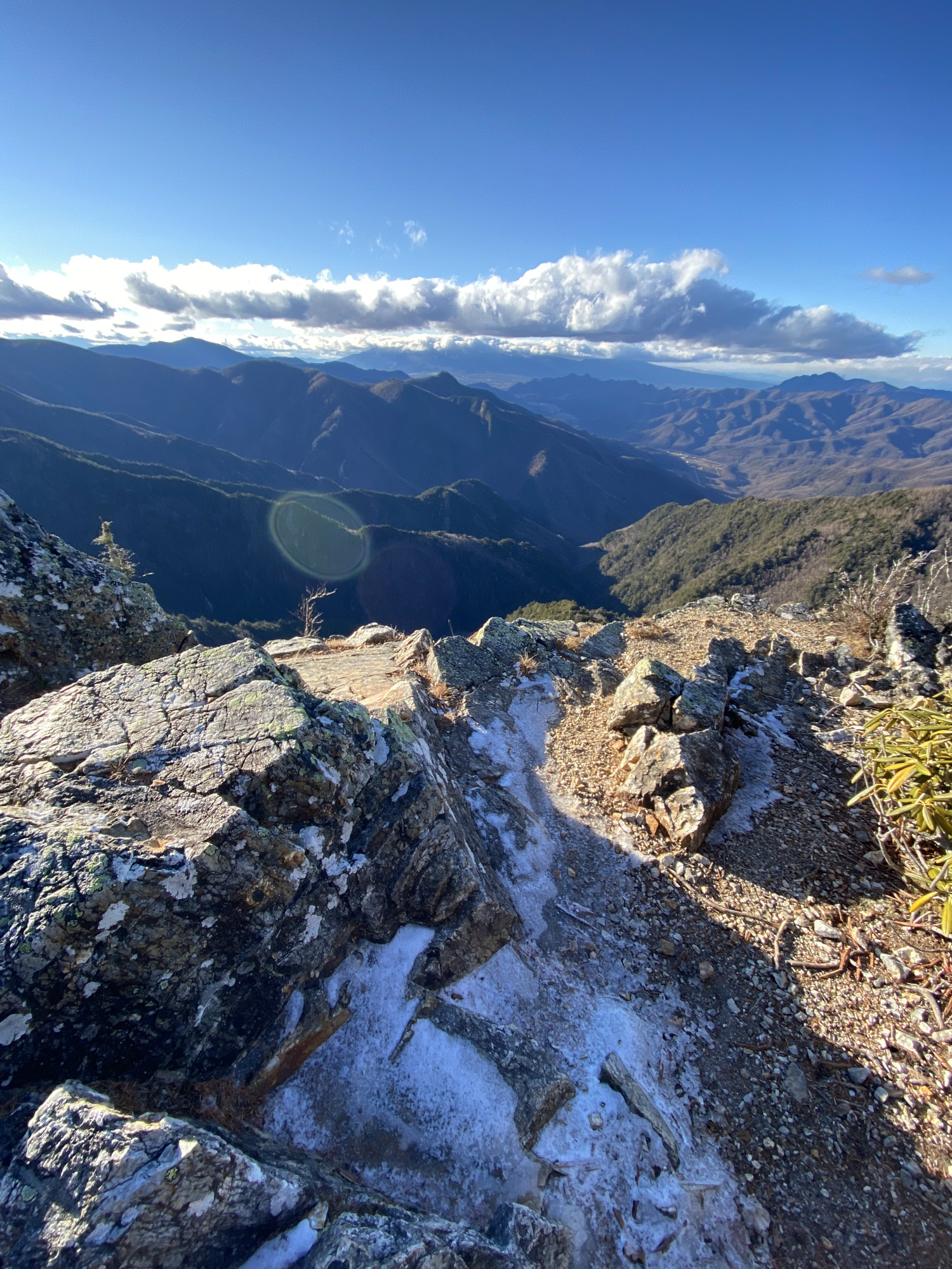 良い景色です。標高2475m。頂上は岩場だったので、木もなくて見晴らしが良い。