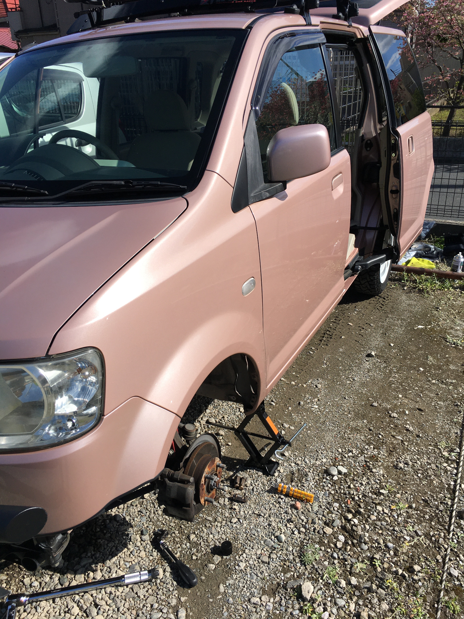 で、フロントは、中の樹脂パーツを取り外す必要があるので、ホイールは取り外すして作業。