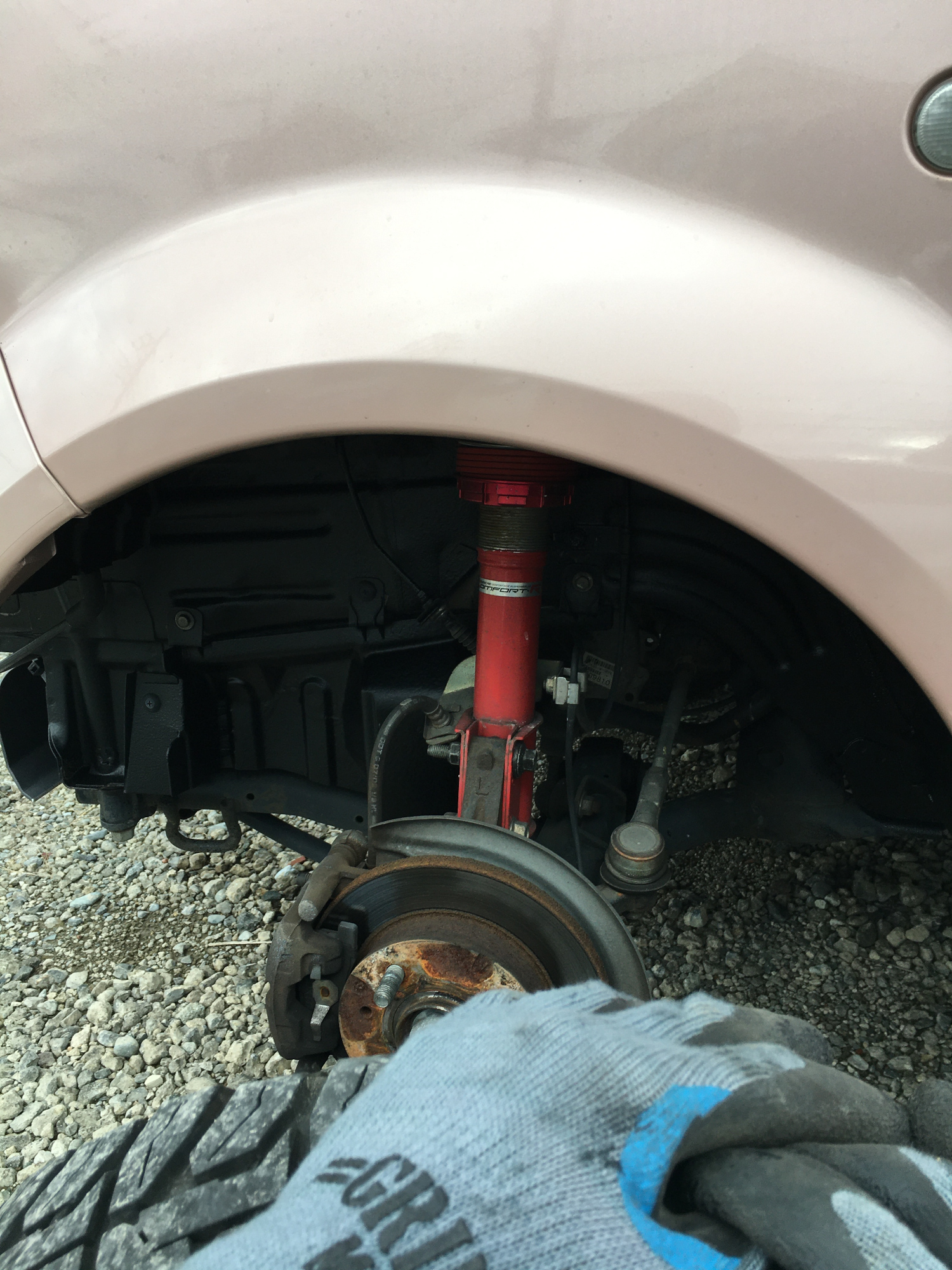 ちなみに、リアはリフトアップしていることもあって、ホイールは外さずに作業できました。