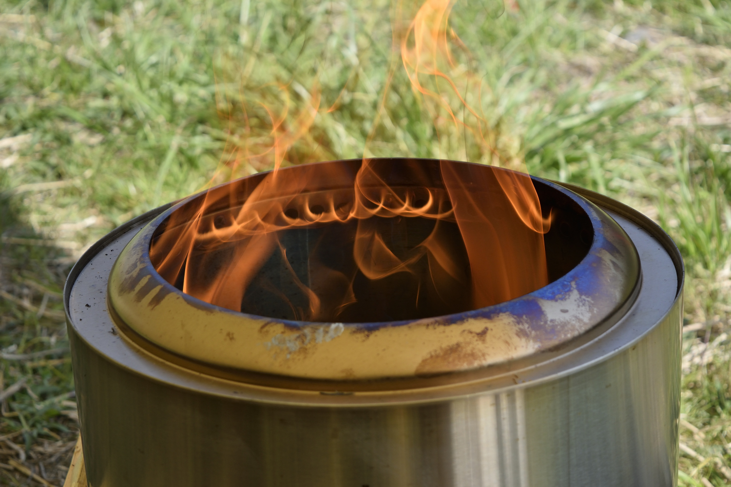 周りの穴からの空気から2次燃焼している様子を見られました。