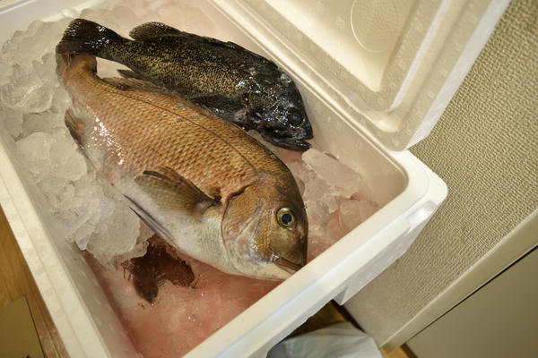 もっと明るく撮れば良かったですかね。氷の下に残り2匹の真鯛。