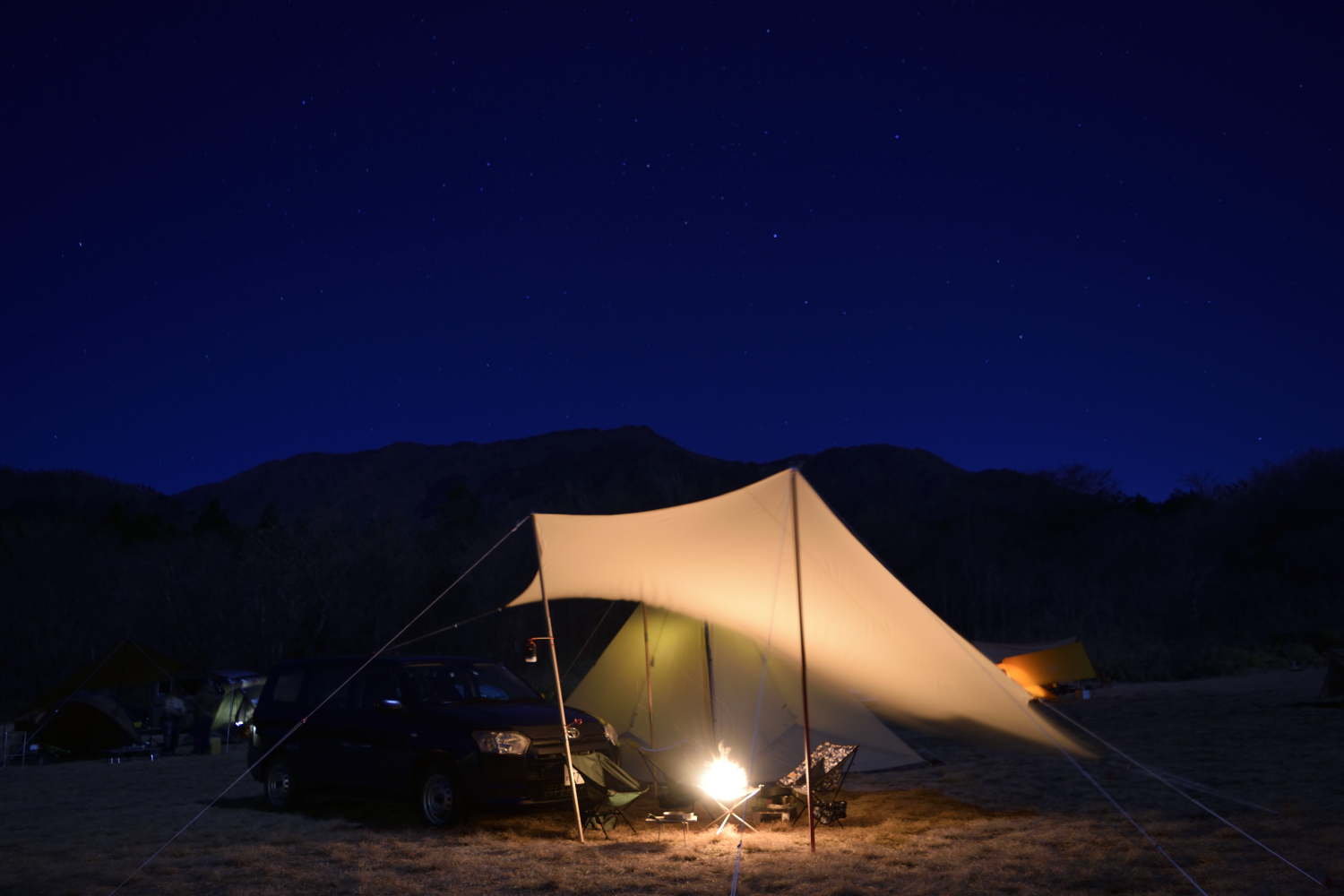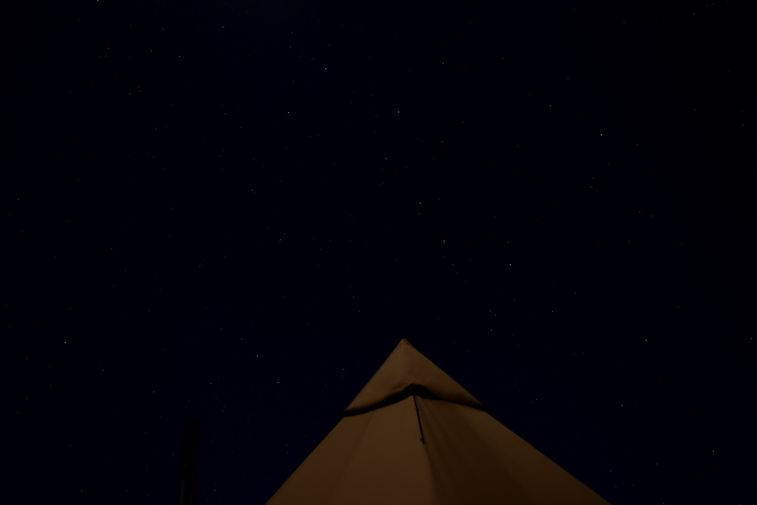 テントの頂点に来るよう位置を調整して撮影。北斗七星です。
