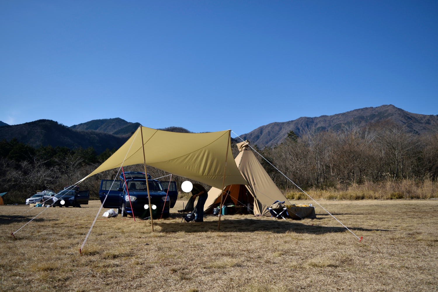 ちょっとひとりで設営するには大き過ぎたタープだったかも。