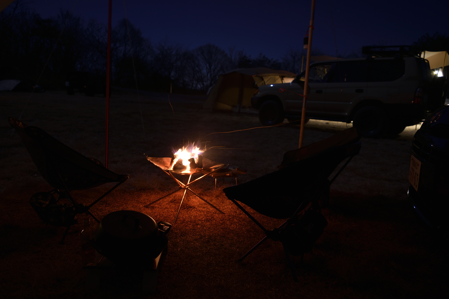 寒さで2人はテントの中でしたが、私は焚火で温まりつつ、星撮影。