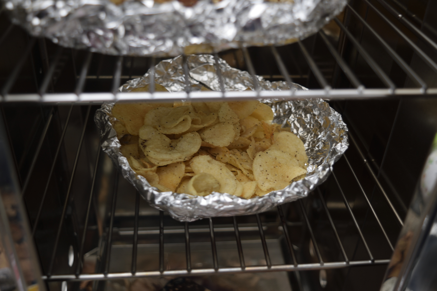 そこからは夕飯の準備をちゃくちゃくとして、燻製も少し。チーズと堅揚げポテト。